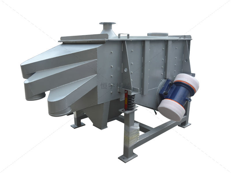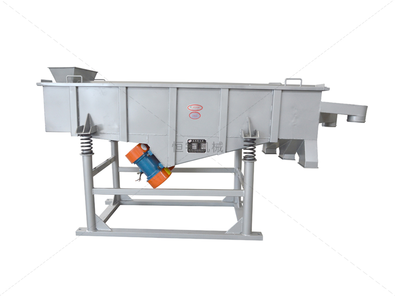 大型直線振動(dòng)篩采用優(yōu)質(zhì)振動(dòng)電機(jī)做為振動(dòng)源,本篩機(jī)配有兩臺(tái)振動(dòng)電機(jī),工作時(shí)兩臺(tái)電機(jī)偏心塊做相反方向轉(zhuǎn)動(dòng),水平方向兩臺(tái)電機(jī)合力為零,垂直于電機(jī)軸方向形成一合力,電機(jī)軸與篩板成一定夾角,合力使物料在篩網(wǎng)上被拋起,同時(shí)向前做運(yùn)動(dòng)。物料從經(jīng)給料機(jī)均勻地進(jìn)入篩機(jī)的進(jìn)料口,通過多層不同孔徑篩網(wǎng)產(chǎn)生數(shù)種產(chǎn)品和不合格的篩上物、篩下物分別從各自的出口排出。