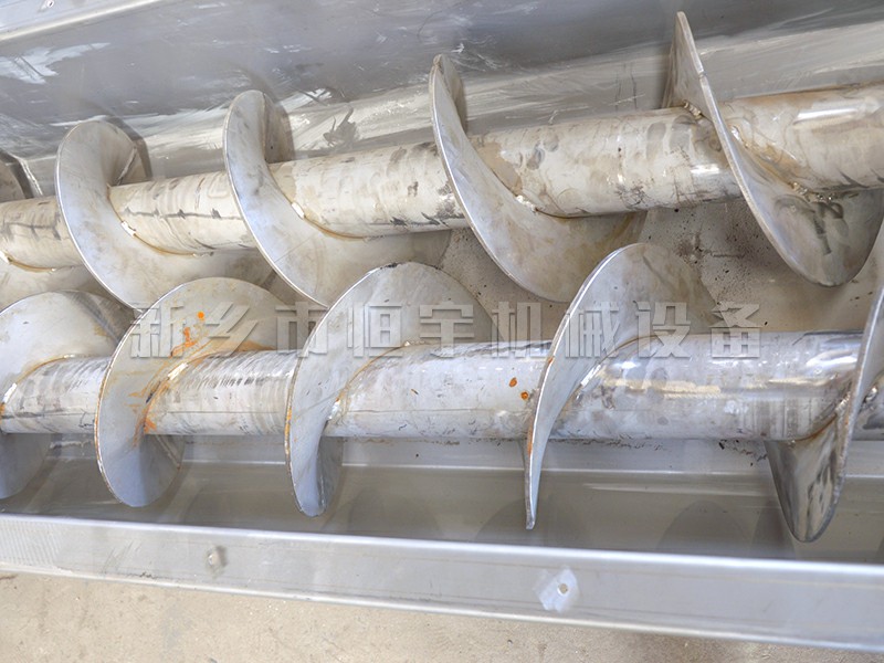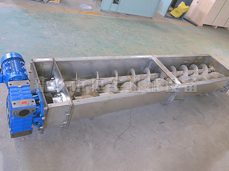 螺旋輸送機(jī)的工作原理是旋轉(zhuǎn)的螺旋葉片將物料在槽或管中推移而得到輸送物料的目的,散料在自重和機(jī)殼的摩擦力作用下堆積在槽的下部,不隨葉片旋轉(zhuǎn)而被葉片推動前進(jìn)。螺旋輸送機(jī)旋轉(zhuǎn)軸上焊的螺旋葉片,葉片的面型根據(jù)輸送物料的不同有實體面型、帶式面型、葉片面型等型式。螺旋輸送機(jī)的螺旋軸在物料運動方向的終端有止推軸承以隨物料給螺旋的軸向反力,在機(jī)長較長時,應(yīng)加中間吊掛軸承。